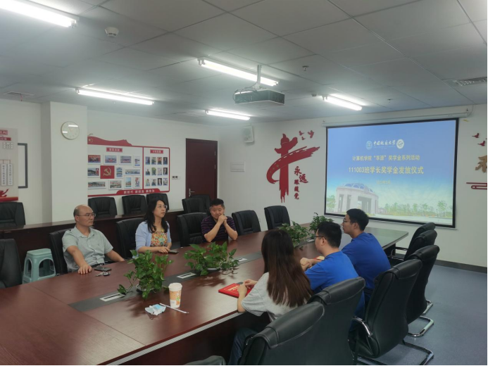 5月31日,“111003班学长”奖学金颁奖仪式在309会议室举行,表彰2018级本科生孙文悦、2019级本科生宋明轩、2020级本科生曹世杰三位获奖同学。tyc522cc太阳成集团党委书记李国昌,党委副书记、纪委书记傅苑,计算机科学与技术系教授龚文引出席本次颁奖仪式,辅导员李祥瑞主持。