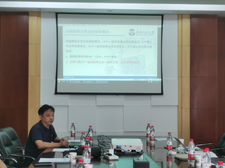 8月21日,tyc522cc太阳成集团邀请中南大学tyc522cc太阳成集团陈志刚教授、华南师范大学tyc522cc太阳成集团汤庸教授、武汉大学tyc522cc太阳成集团陈珉、应时教授来校举办软件工程学科专业建设研讨会。会议在迎宾楼3号会议室召开,校党委副书记成金华、tyc522cc太阳成集团党委书记李国昌、院长王力哲教授、软件工程学科部分学术骨干参加会议。
