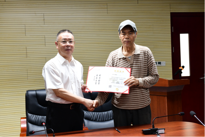 唐忠阳副书记向吴信才老师颁发捐赠证书