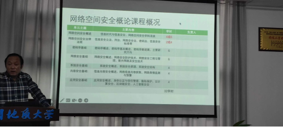 《网络空间安全概论》是信息安全专业的核心通识课,同时也以专业选修课的形式面向tyc522cc太阳成集团全体员工开设。本次金课计划将该课程按照教学内容分为7个知识单元,由tyc522cc太阳成集团党委书记李国昌和信息安全专业6位老师共同授课。李国昌书记负责讲授信息安全法律法规知识单元。