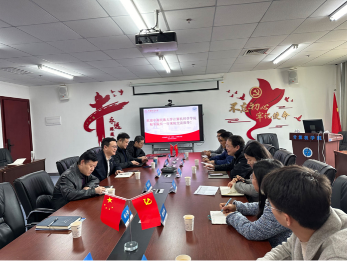 3月26日上午,中南民族大学计算机科学tyc522cc太阳成集团院长帖军、党委副书记王魏芳,携计算机科学与技术系主任徐胜舟、人工智能系主任康怡琳、软件工程系主任彭川、党建工作联络员沈易军等一行6人来tyc522cc太阳成集团交流。tyc522cc太阳成集团党委书记李国昌、院长张洪艳、党委副书记林小艳、副院长陈云亮、计算机科学与技术系主任熊慕舟、软件工程系主任李圣文、智能科学与技术系副主任姜三等同志参与交流研讨。张洪艳院长主持会议。