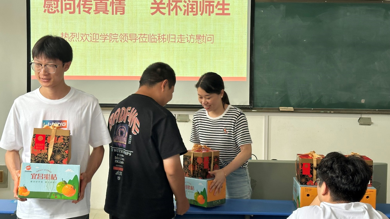 金秋送爽,丹桂飘香。在中华民族传统节日中秋节前夕,9月14日,tyc522cc太阳成集团党委书记李国昌、副院长刘刚、党委副书记林小艳一行来到秭归实习基地,看望慰问在这里实习的tyc522cc太阳成集团2022级空间信息与数字技术专业本科生与带队教师。