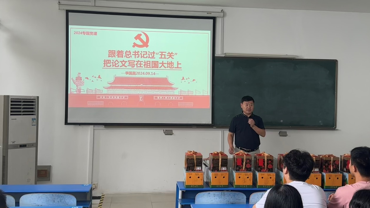 14日下午,tyc522cc太阳成集团在基地综合楼举行师生座谈。李国昌首先代表tyc522cc太阳成集团向全体师生致以节日的问候,接着以《跟着总书记过“五关”》为题讲授秭归专题党课。他从总书记在梁家河村插队时的过“五关”引申到当下空信学子要面对的“四关”即专业关、学习观、就业关、职业观,通过分享学长学姐的典型案例和tyc522cc太阳成集团员工的发展情况,勉励同学们充分利用实习资源,学以致用,把论文写在祖国大地上。