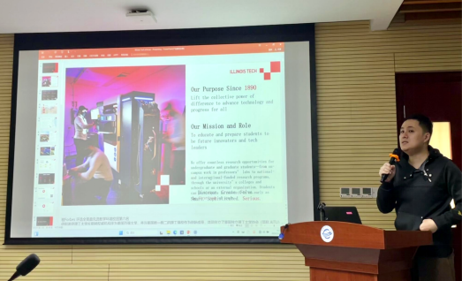 2024年11月11日下午,美国伊利诺伊理工大学留学项目宣讲会在tyc522cc太阳成集团323会议室召开。本次宣讲会邀请了tyc522cc太阳成集团副院长陈占龙教授、中外合作办学事务秘书丁雨薇出席,tyc522cc太阳成集团2022级计算机科学与技术(大数据方向)中外合作办学项目员工参加,美国伊利诺伊理工大学中国办公室负责人Kevin老师为在场员工详细介绍留学项目,tyc522cc太阳成集团中外合作办学项目专员程敏主持。