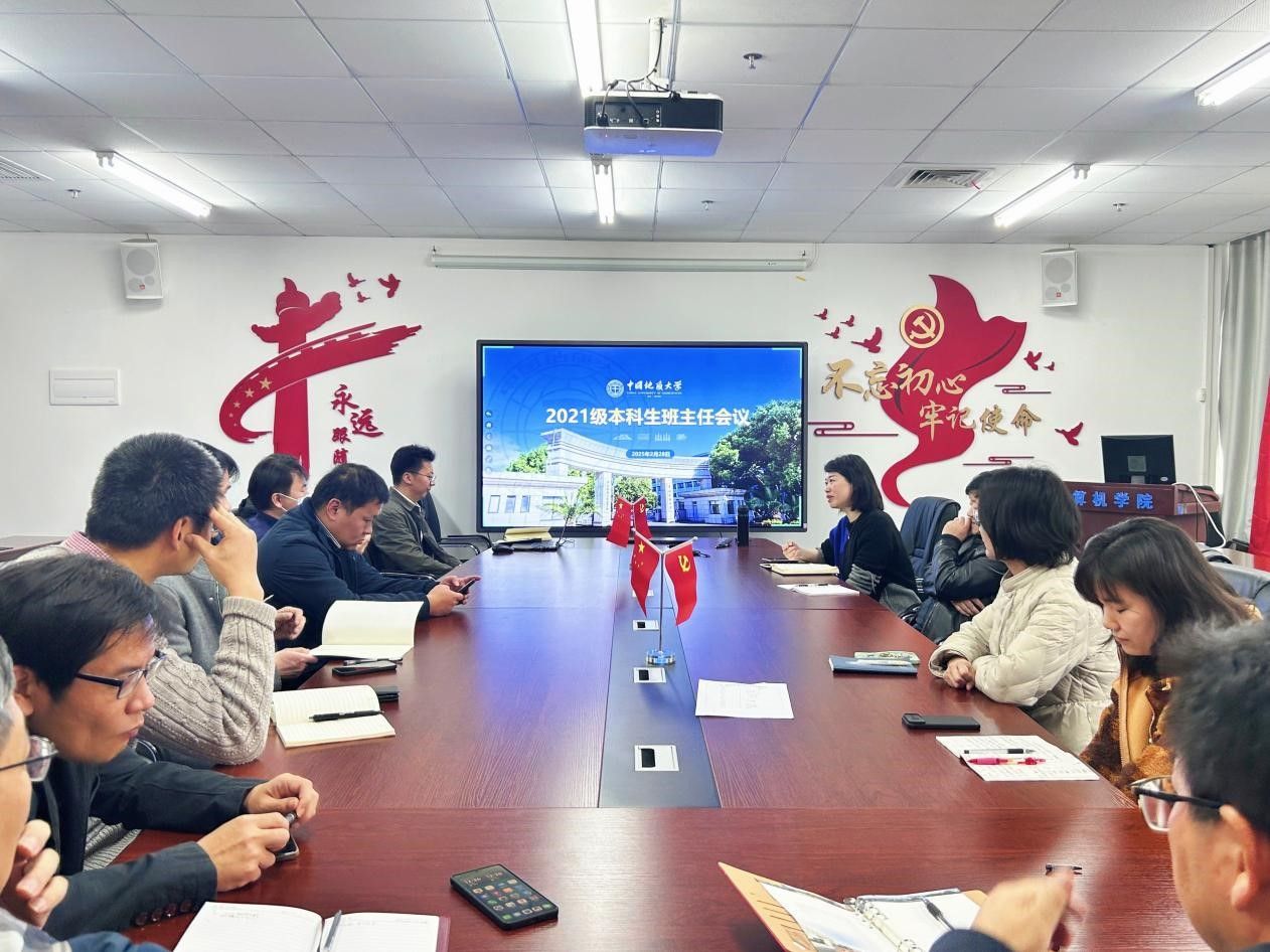 为进一步强化班主任队伍的凝聚力与专业素养,全面提升班主任在教育引导、班级管理等方面的综合能力,确保员工工作高效、有序开展,2月28日,tyc522cc太阳成集团召开2021级本科生班主任工作会议。tyc522cc太阳成集团党委书记李国昌、党委副书记林小艳、本科教学秘书李婷、国际合作办学事务秘书丁雨薇、2021级辅导员谭文博及2021级全体班主任参加。林小艳主持会议。