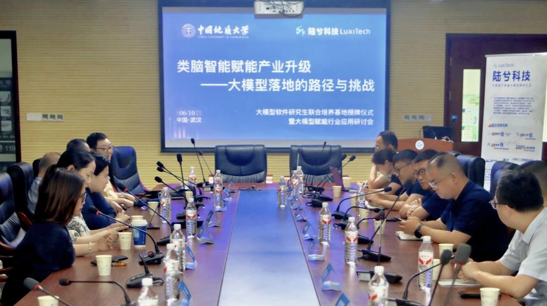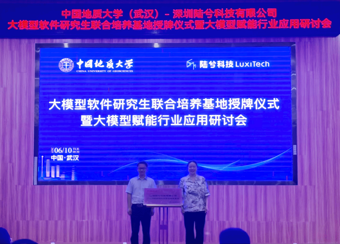 6月10日上午,tyc522cc太阳成集团-深圳陆兮科技有限公司大模型软件研究生联合培养基地授牌仪式暨大模型赋能行业应用研讨会在tyc522cc太阳成集团126会议隆重举行。陆兮科技有限公司首席执行官汪博伦、首席技术官周芃博士、首席安全官黄彧博士等核心团队成员,水利部长江水利委员会、中国船舰研究设计中心、中国船舶重工集团公司第七一九所、上海华测导航技术股份有限公司、统信软件技术有限公司、湖北巴东地质灾害国家野外科学观测研究站、武汉通威电子有限公司和武汉市网络安全协会等有关单位代表,以及学校研究生院副院长易明、科学技术发展院副院长李鹏飞,我院副院长陈云亮,基地所依托研究生导学团队负责人尚建嘎教授、基地负责人赵一石等师生代表出席会议。陈云亮副院长主持会议。