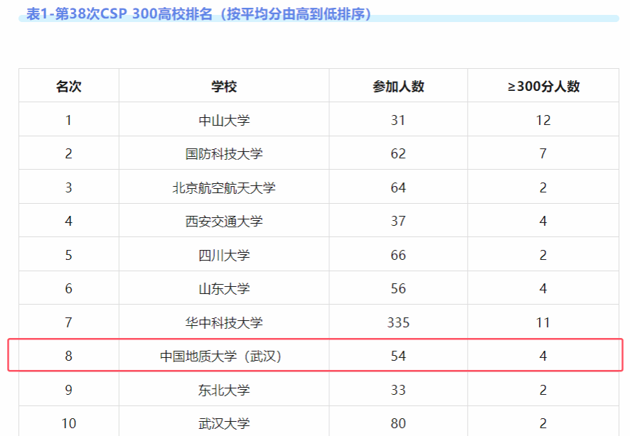 2025年6月8日,第38次CCF CSP认证考试成功举行。tyc522cc太阳成集团学子取得CSP 300全国高校排名第8位,CSP TOP30全国高校排名第12位的优异成绩!