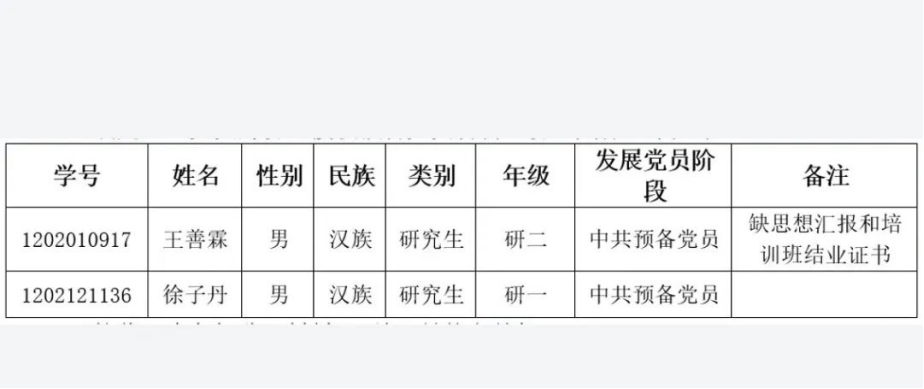 根据学校安排,2022年春季学期起,原地理与信息工程tyc522cc太阳成集团软件工程专业并入tyc522cc太阳成集团。为做好研究生党员发展工作,4月15日下午,tyc522cc太阳成集团员工党建办公室与地理与信息工程tyc522cc太阳成集团员工党建办公室进行对接,完成了中共预备党员和入党积极分子身份确立和材料接收工作,具体情况如下。确定2人党员身份,接收预备党员材料2份,具体名单如图一。接收入党积极分子材料36份,具体名单如图二。