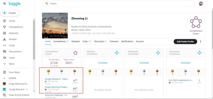 在此次的五场竞赛中,tyc522cc太阳成集团数据科学与大数据技术系2020级中美本科教育合作办学项目本科生李祯宁同学以及谭以宁、秦浩然、陈予贤三人组成的队伍SatoshiShimomoto发挥出色,获得佳绩。Kaggle创办于2010年,目前已经被Google收购,拥有超过80万名数据科学家用户,是全球顶级的数据科学竞赛平台,在数据科学领域享有盛名。Kaggle的使命是通过众包的方式,解决世界上最棘手的问题,同时推动机器学习和数据科学的发展。对参赛者来说,不仅是考验自己能力,更是一场实战经验。