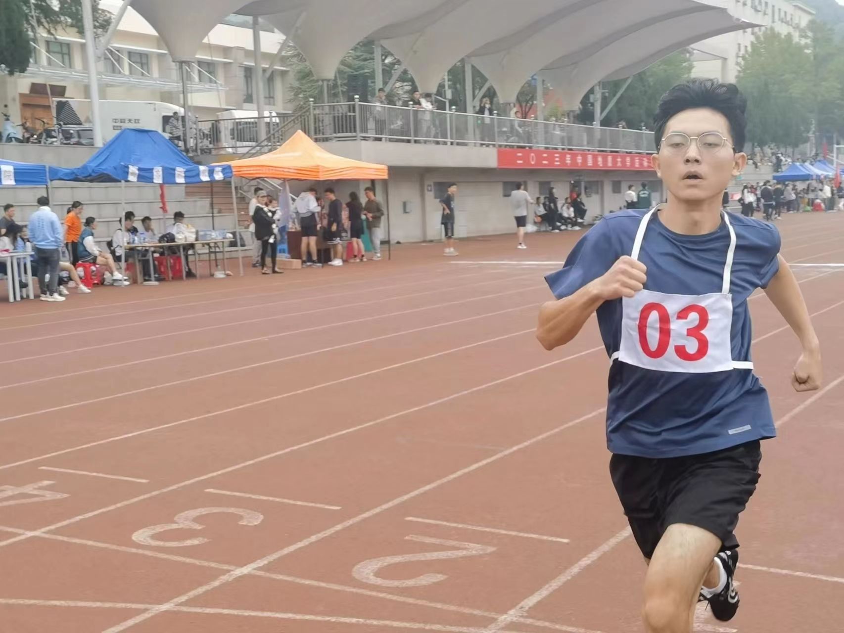 赤红的跑道上,是那一个个破风的身影。他们的眼前是冲刺的终点线,尽管汗水模糊了视线,仍旧奋力冲刺。耳畔是同学们的加油助威,脚下是愈加坚定的步伐。其中,男子组石亮同学斩获400米第二名、800米第三名,女子组李紫晗也获得了400米第四名的好成绩。