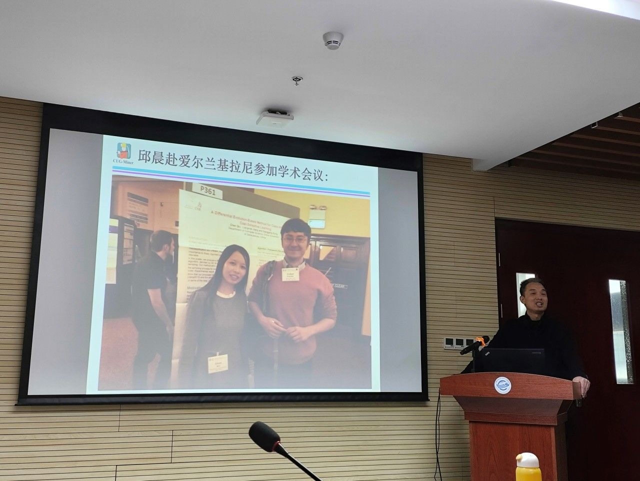 蒋良孝老师首先向同学们介绍了他的工作和学习经历,并展示了许多留学时期的照片。每一张照片都记录了他在国外留学期间的点滴回忆,那些留学的日子,那些奋斗的夜晚,都定格在照片中,也让同学们更加深入地了解了留学背后的故事。蒋老师以自己的亲身经历鼓励同学们要树立远大理想信念,坚定目标、初心,躬身科学研究实践,以敢于求实探索的魄力去面对困难、挑战,实现人生目标。