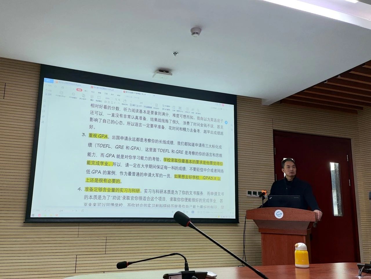 在讲座中,蒋老师结合员工成功申请留学的经验,就出国留学的重要环节,提出了一系列实用的建议:尽可能高的GPA、早准备语言成绩、更多更好的实习和科研等等。最后,他也分享了一些对未来的展望和期待。他表示,每一个出国留学的同学都要有充分的准备,在申请材料上需要保持爱心、耐心和细心。他勉励同学们要勇于抓住机会,不要畏手畏脚。在专注于深入研究和提升自己能力的同时,也要注意建立和维护人际关系,以便在未来的发展道路上获得更多的机会。