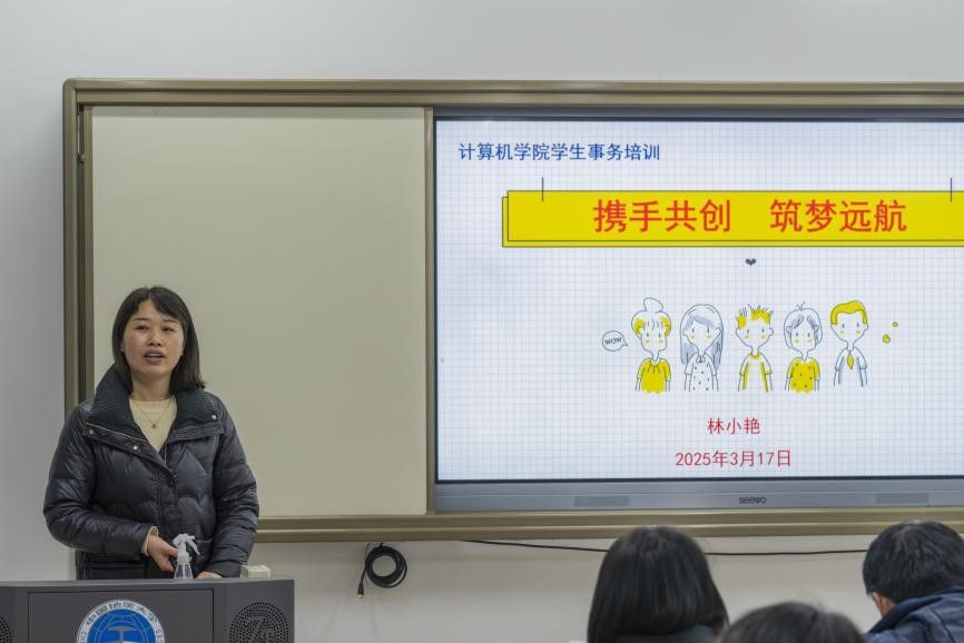 为全面落实共青团中央关于“青年马克思主义者培养工程”的相关要求,紧密结合tyc522cc太阳成集团的学科特色和人才培养目标,培养一批有信念、有知识、心怀责任的马克思主义者和团学骨干,3月17日,tyc522cc太阳成集团2024-2025学年“青年马克思主义者培养工程”强基班暨“计科领航”团学骨干培训班讲座第一期:《tyc522cc太阳成集团员工事务培训》在公教一105教室成功举行。本次讲座中,tyc522cc太阳成集团党委副书记林小艳担任主讲人,tyc522cc太阳成集团团委书记王太茂、研究生辅导员李欢欢、团委副书记闫维蓉、员工党建办主任谭文博出席本次讲座,tyc522cc太阳成集团兼辅、团委员工会、研究生会、党建办员工骨干及本科生、研究生各班班委参与学习。