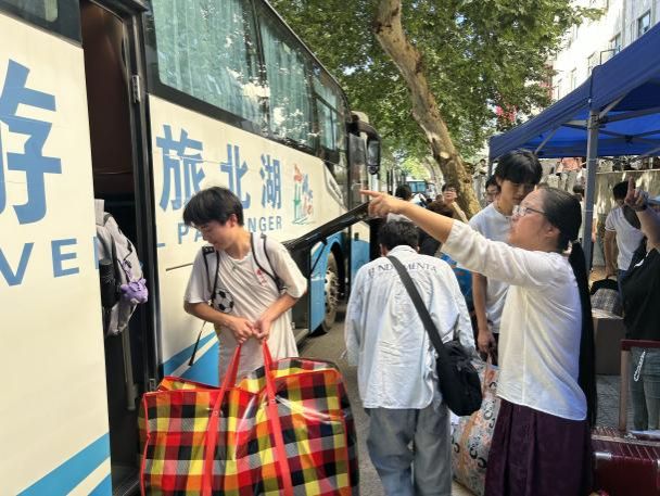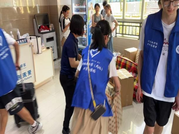 大巴驶入校园,在同学们即将入住的宿舍前,橙色的遮阳棚早已搭好,身穿蓝色马甲的志愿者们静候多时。多辆搬运车辆将员工行李送到宿舍楼下,老师和志愿者们积极帮助2024级计科学子们搬运行李,引导方向;宿管阿姨给大家发放钥匙,认真细致地登记信息;同学们团结协作,将一件件沉重的行李搬进新宿舍,开启一段全新的学习与生活旅程。