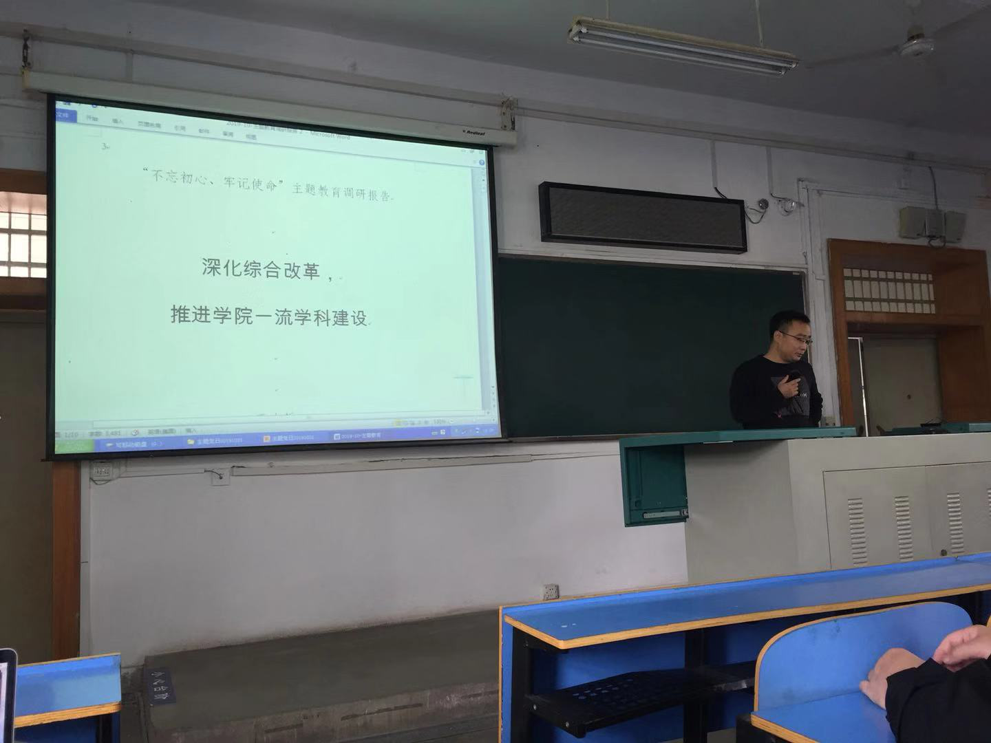 10月31日,tyc522cc太阳成集团计算机应用系党支部“不忘初心 牢记使命”主题党日活动在南望山校区教一楼205室成功举行。此次主题党日活动特别邀请了tyc522cc太阳成集团院长王力哲教授就《深化综合改革 推进tyc522cc太阳成集团一流学科建设》进行专题调研成果分享和传达,开展了“对照党章党规找差距” 专题会议,并观看学习了《榜样4》教育视频。专题教育指导组王珩同志、tyc522cc太阳成集团院长王力哲同志以及全体应用系党员出席了本次主题党日活动。