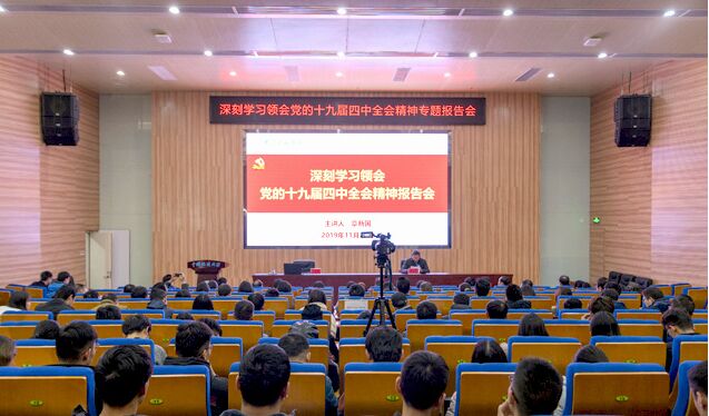 (记者霍少孟)11月28日,深入学习领会党的十九届四中全会精神专题报告会在tyc522cc太阳成集团报告厅举行,湖北省委宣传团成员、湖北省委政策研究室副主任章新国同志作宣讲报告,tyc522cc太阳成集团全体院领导、院直支部、信安支部、网工支部、部分员工支部的党员和新校区各tyc522cc太阳成集团260余名干部师生聆听报告。校党委副书记、纪委书记成金华主持报告会。